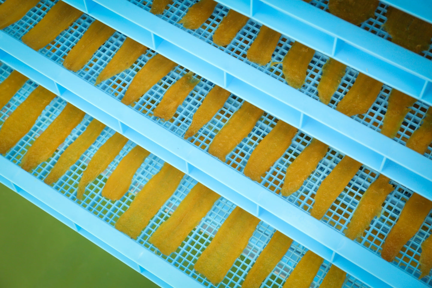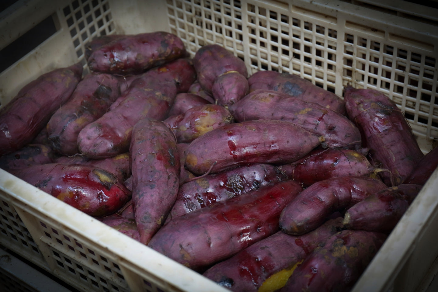 田んぼで作る自慢の紅はるかを十分に熟成。基準の甘さを超えたもののみを、蒸しあげ、低温でじっくり水分を抜いていきます。干し芋がオレンジ色になるように長時間蒸し、コクのある甘みを追求しています。しっとり食感の干し芋。